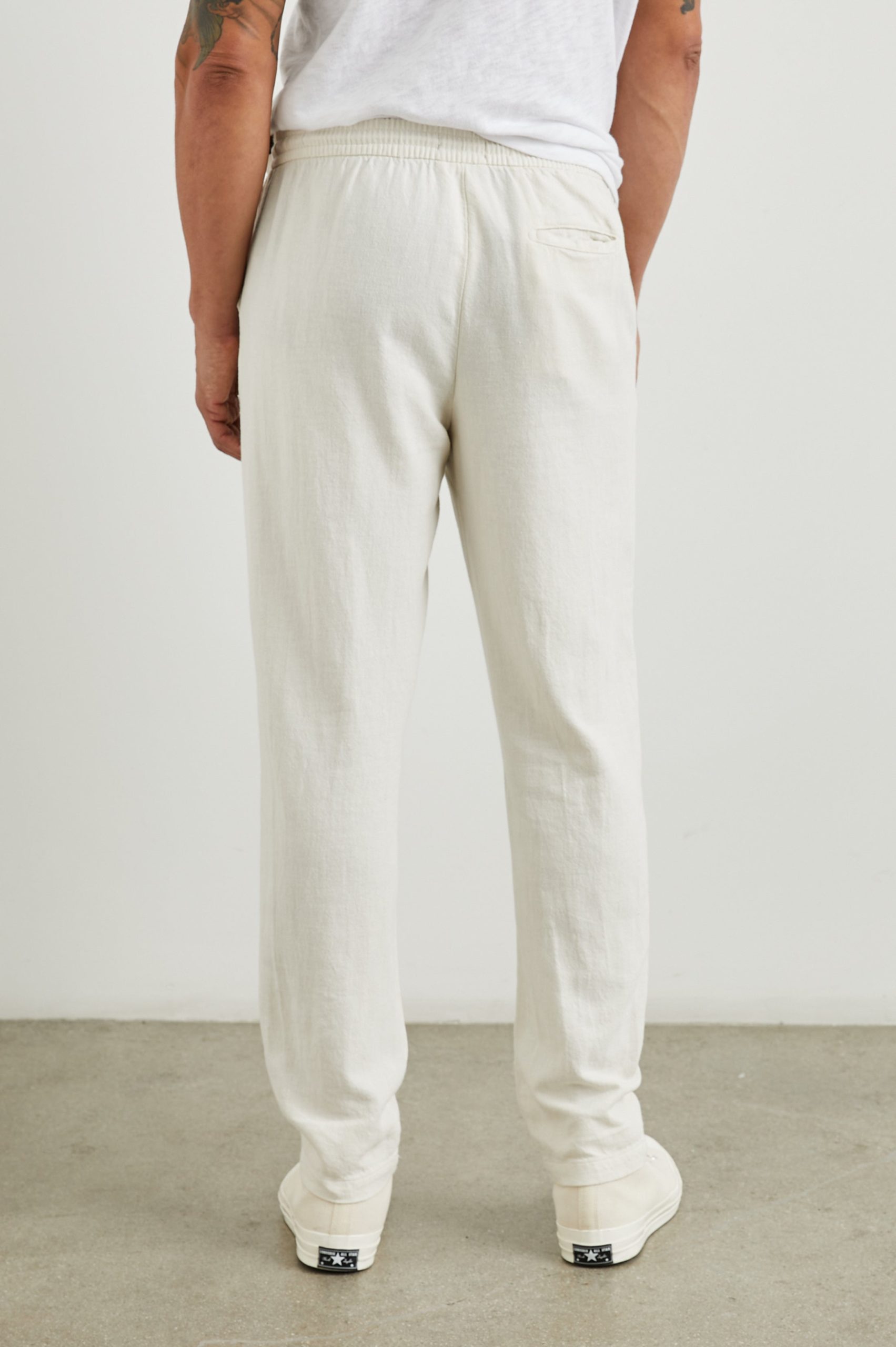 The Callum transforms the lounge pant into the ultimate comfortable slacks. Crafted from breathable cotton-linen twill, it features a slightly tapered, straight-leg fit, an elastic waistband, and an adjustable drawstring for a customizable fit.