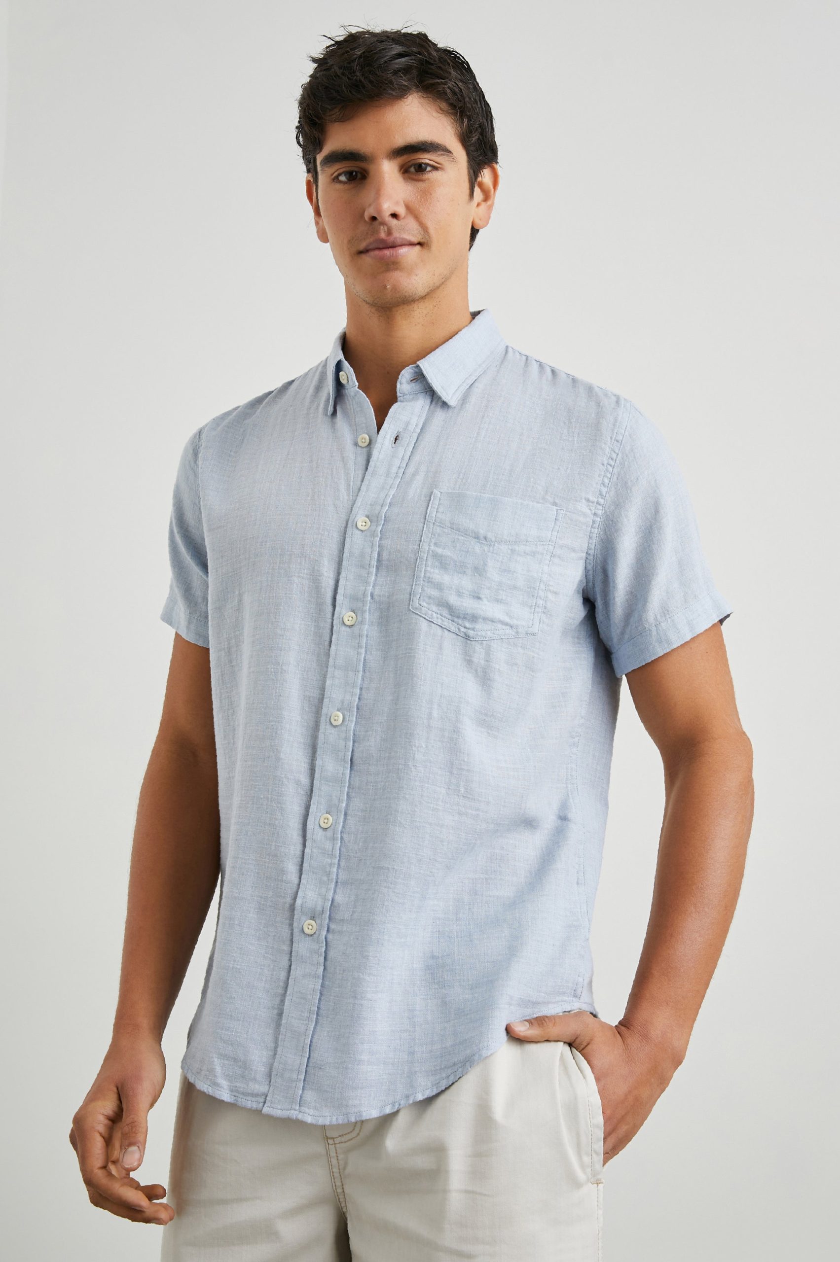 This super soft, laidback shirt is perfect for any occasion from work to weekend. Made from lightweight cotton, this short sleeve button-down shirt features a single patch pocket at chest.