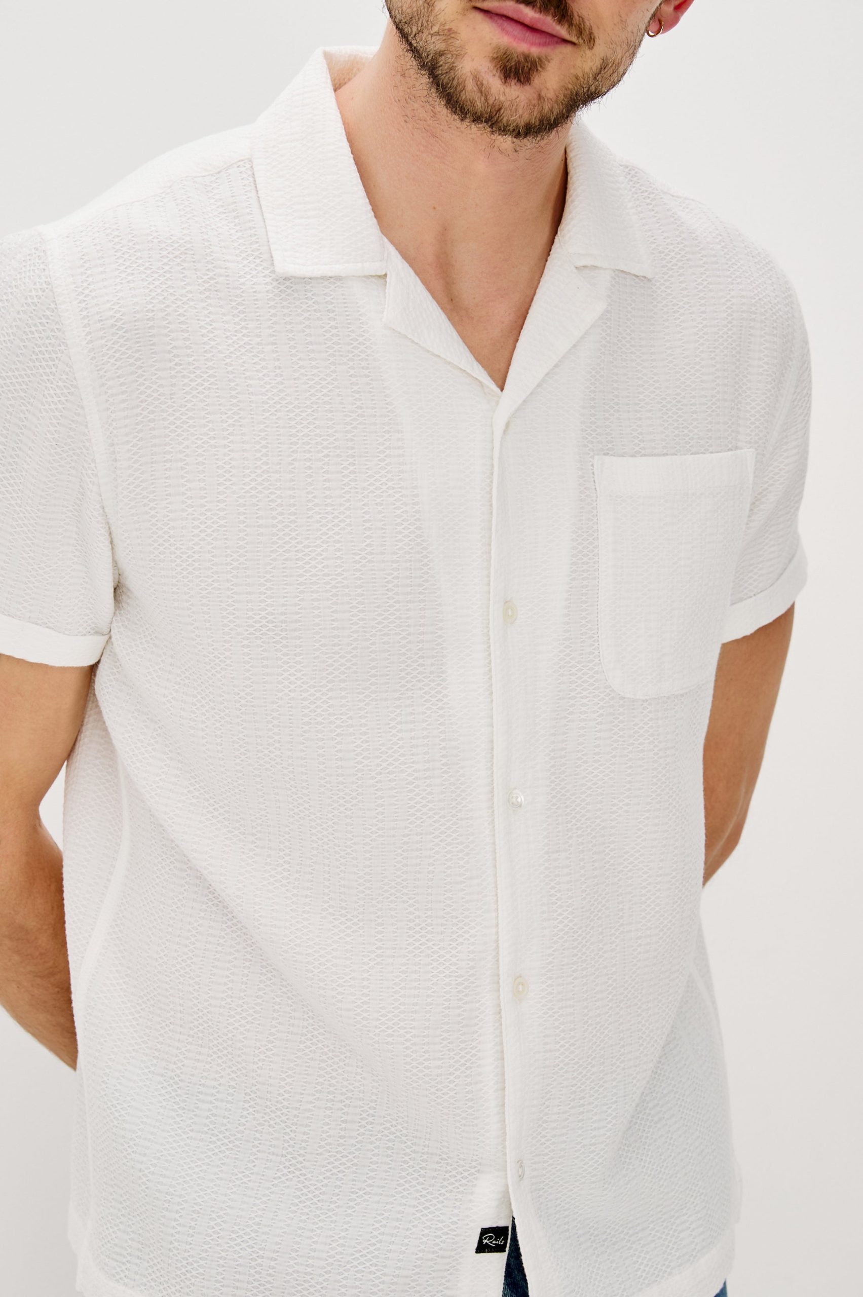 Cut from textured, jacquard-inspired cotton fabric, the Haney is an elevated take on your classic camp shirt. Designed for effortless wear, it features a relaxed fit, rolled sleeves, and a single front chest pocket.