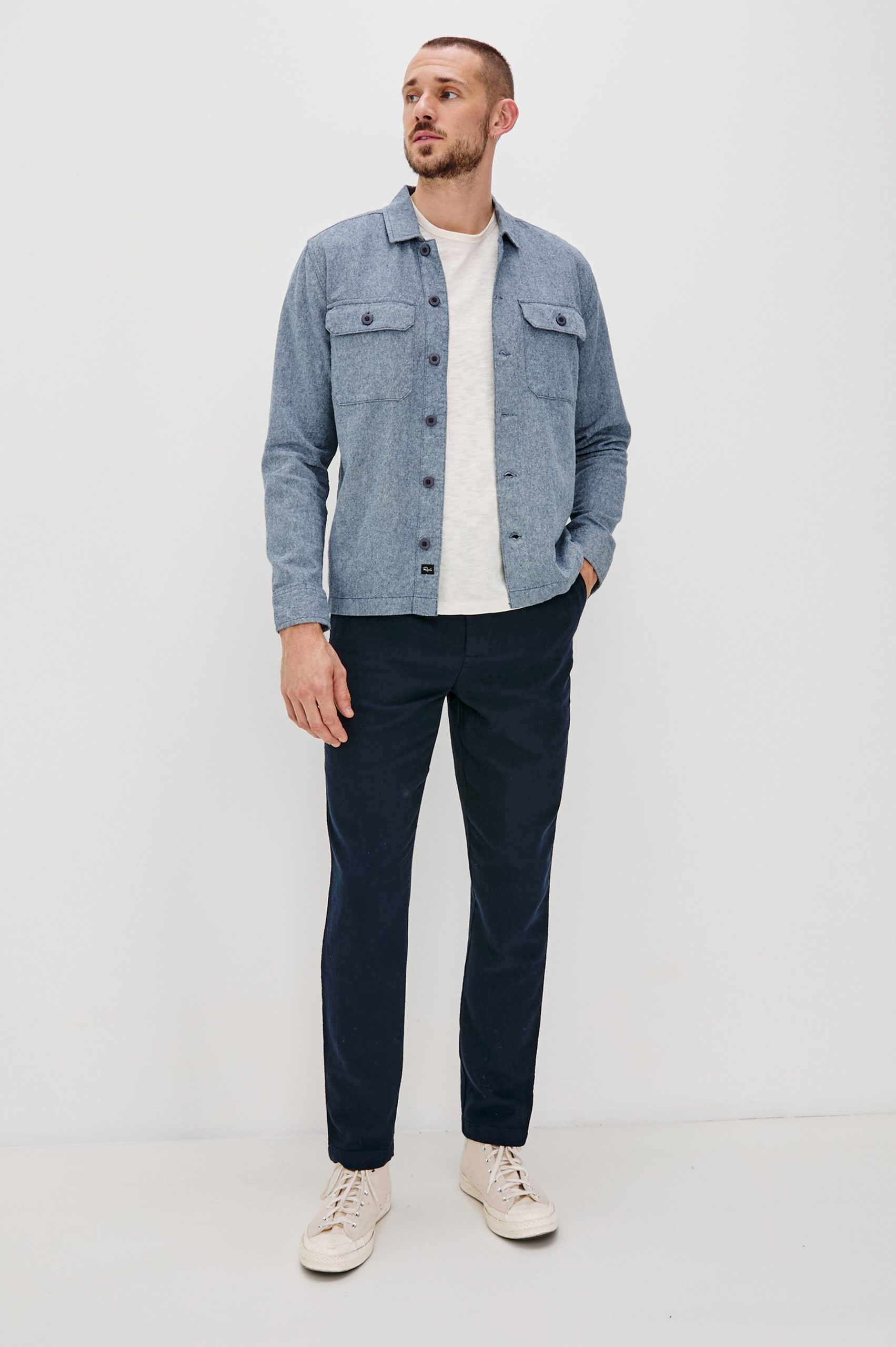The Hayes is an essential shirt-jacket made for any season. Crafted from a durable linen-cotton slub for subtle texture, it features chest patch pockets for added character. Wear it all year long—layered up or on its own.