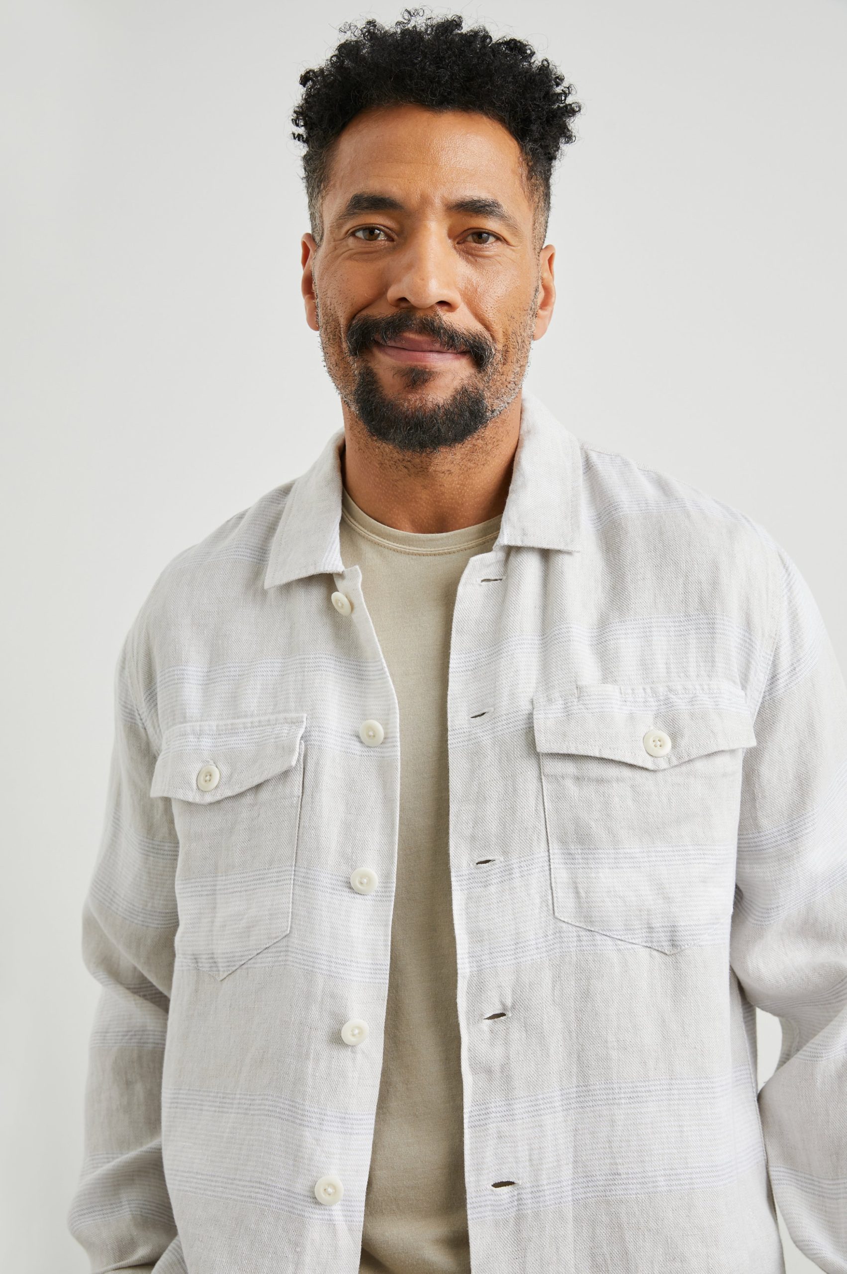 Stay equipped for any adventure with this military-inspired Kerouac. A rugged take on the shirt jacket, the Kerouac is crafted from 100% cotton twill for optimum comfort, with a button-down front closure, classic fit, and flap pockets at the chest. Wear from day to night and brave the elements in style.