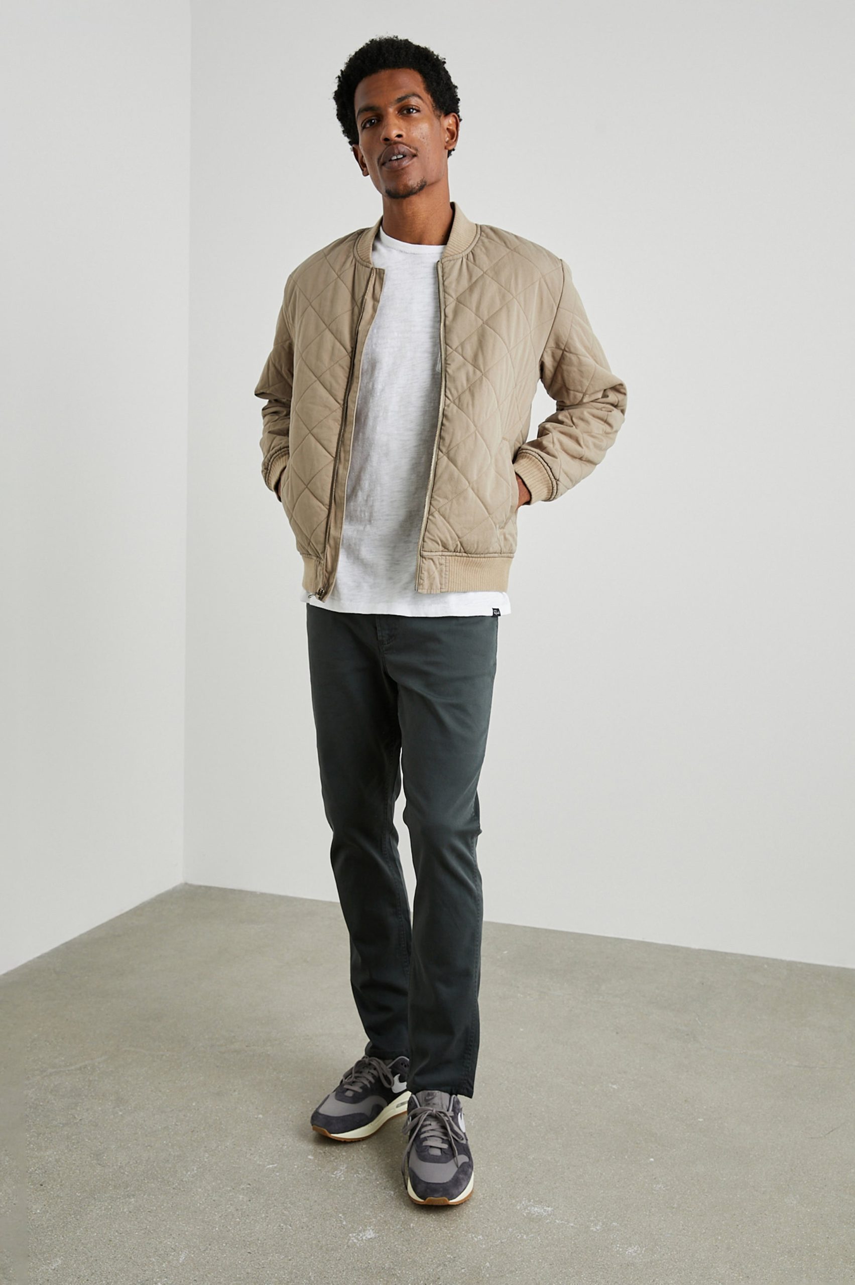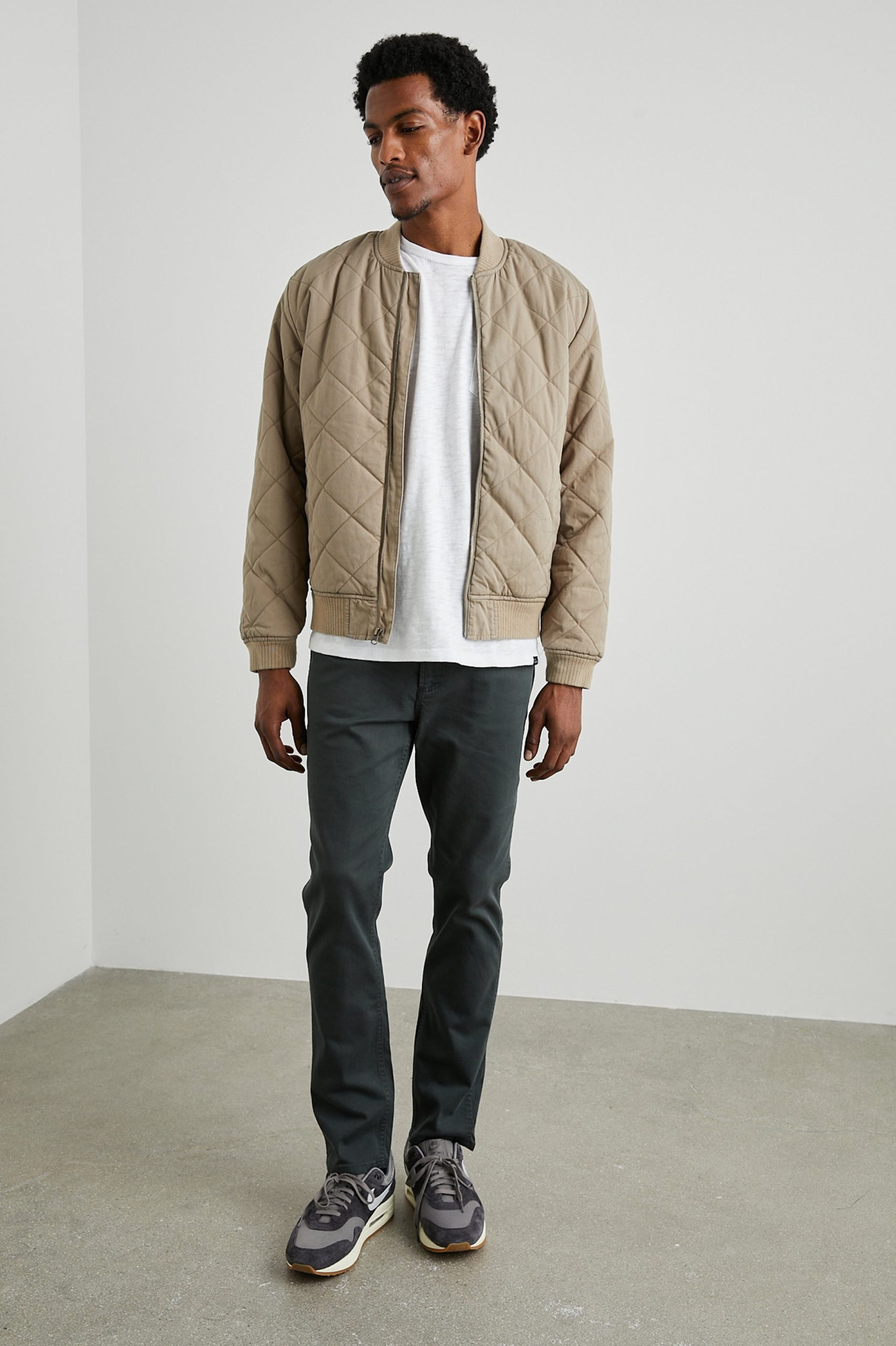 This style is made for transitional weather and is an easy way to elevate any outfit with minimum effort. This quilted bomber style jacket comes in a mid-weight cotton canvas fabrication and features a rib trim.