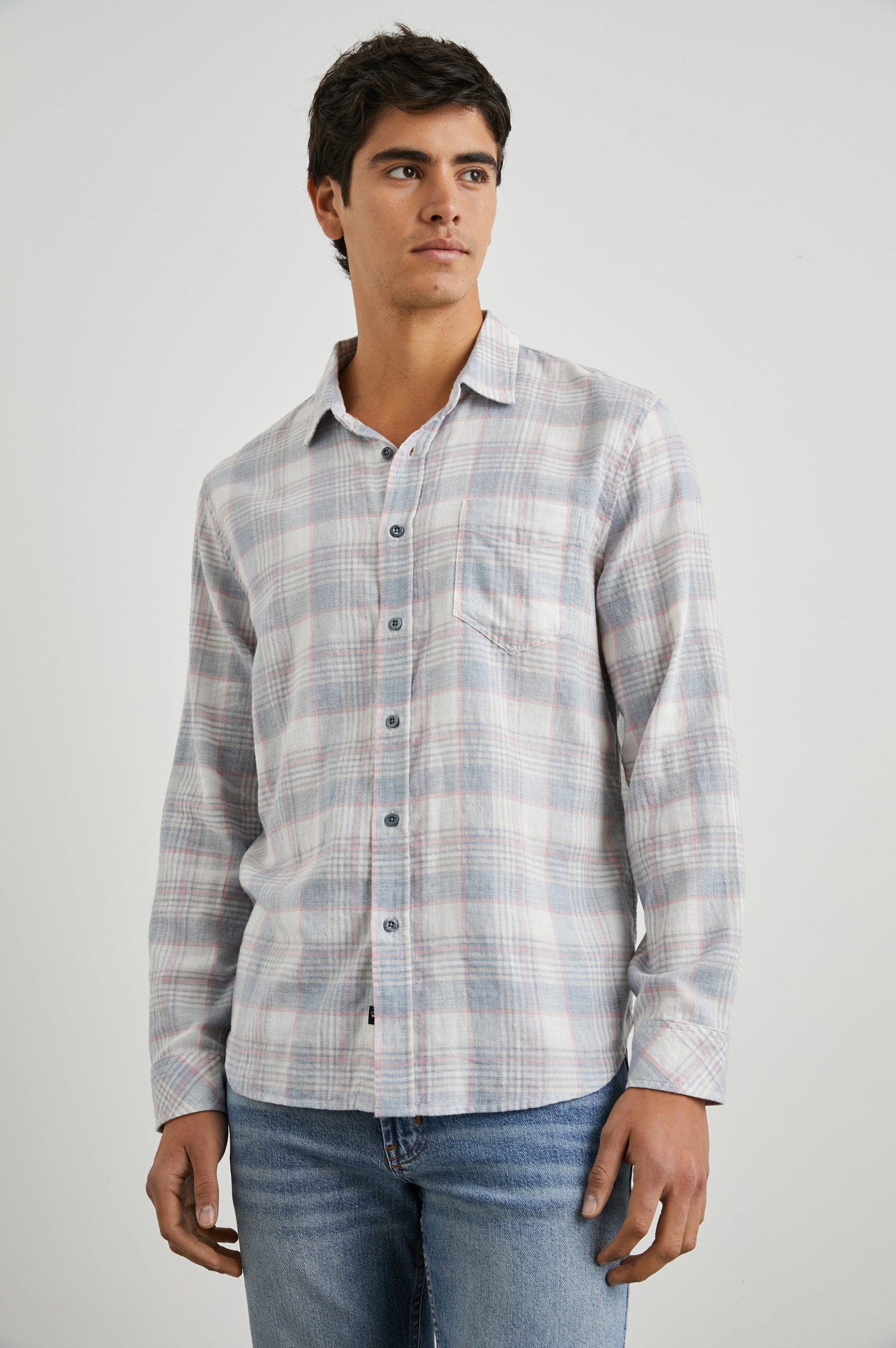 Super soft, breathable cotton fabric mixed with a relaxed body shape makes Wyatt the perfect Southern California inspired button-down. This classic shirt features a single patch pocket at chest.