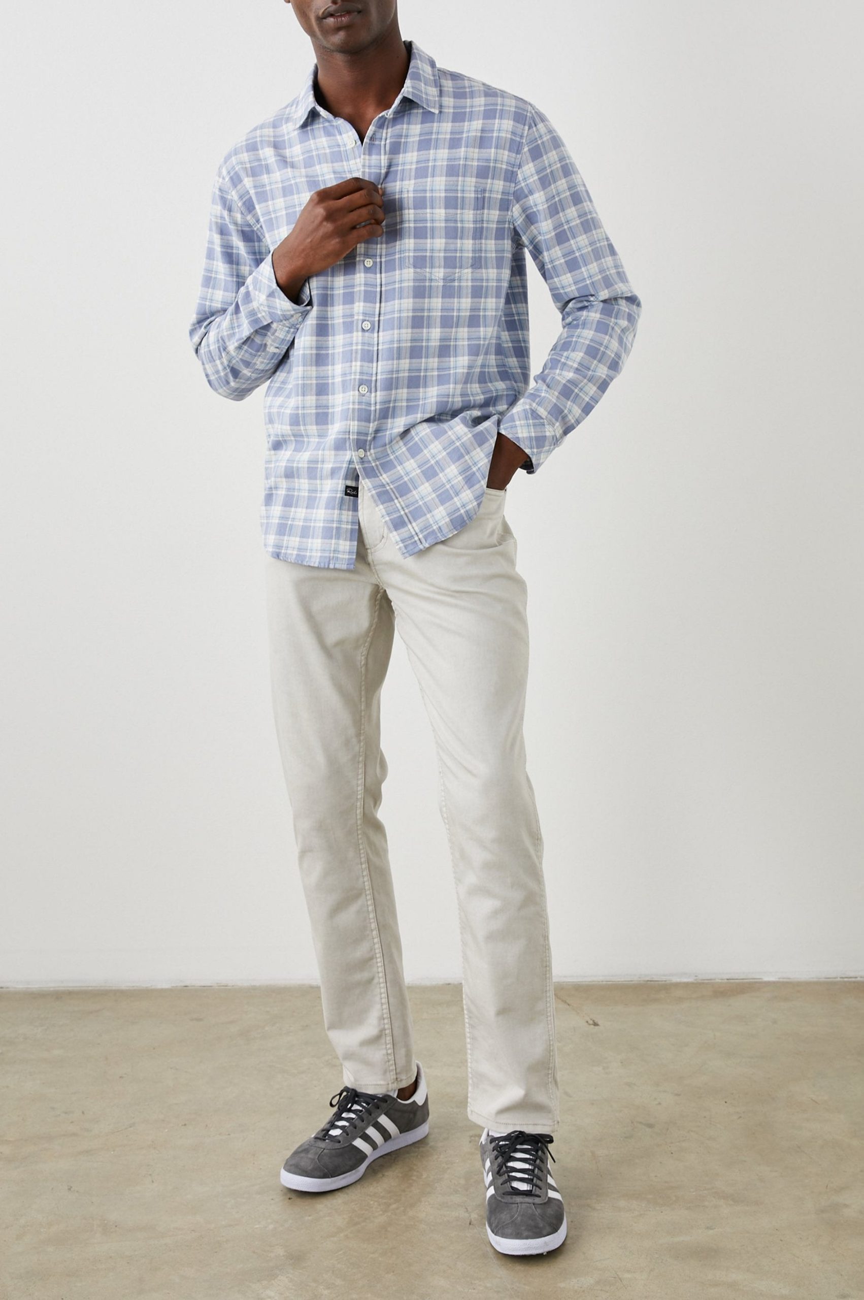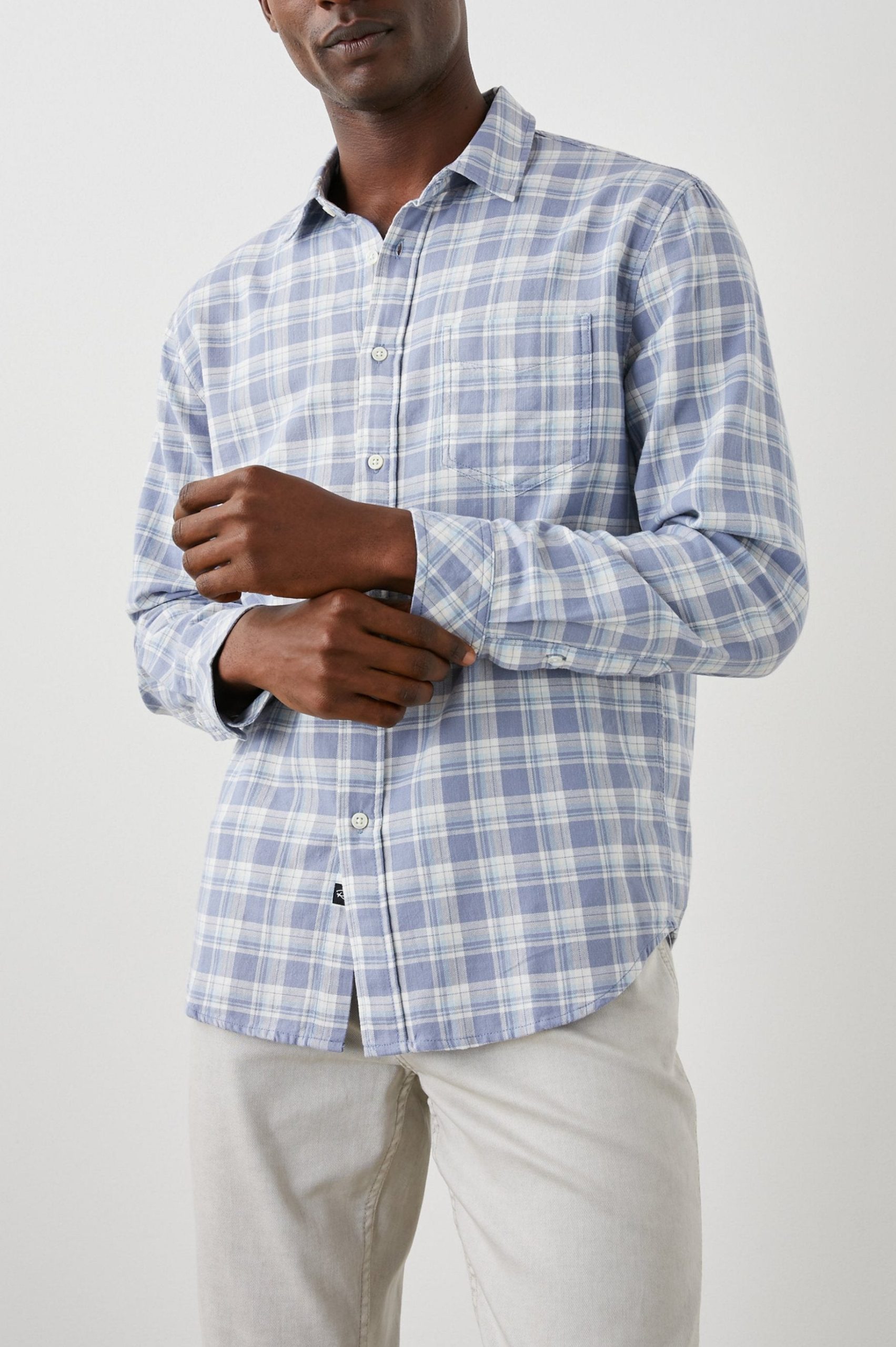 Super soft, breathable cotton fabric mixed with a relaxed body shape makes the Wyatt the perfect Southern California inspired button-down. A classic shirt featuring a single patch pocket at chest.