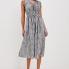 Crafted in a lightweight textured gingham fabric, the Adine midi dress features a fitted bodice, full skirt, and easy-wearing silhouette with feminine details.