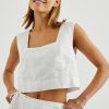 The Akira is a fully-lined heavy linen crop with bust darts to ensure a tapered fit and features a flattering square-neckline. For the ultimate all-white everything outfit, pair with the Carly skirt.