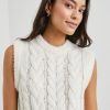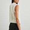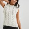 This cozy cable knit sweater vest is the perfect transitional layering piece. This chunky wool blend sweater vest is made from an Alpaca blend and features a crewneck neckline and slightly cropped fit.