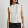 This cozy cable knit sweater vest is the perfect transitional layering piece. This chunky wool blend sweater vest is made from an Alpaca blend and features a crewneck neckline and slightly cropped fit.