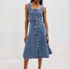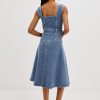 The Aliso denim midi dress features a flared skirt with plenty of movement, crafted from recycled cotton. An adjustable denim belt allows for a personalized, form-flattering fit.