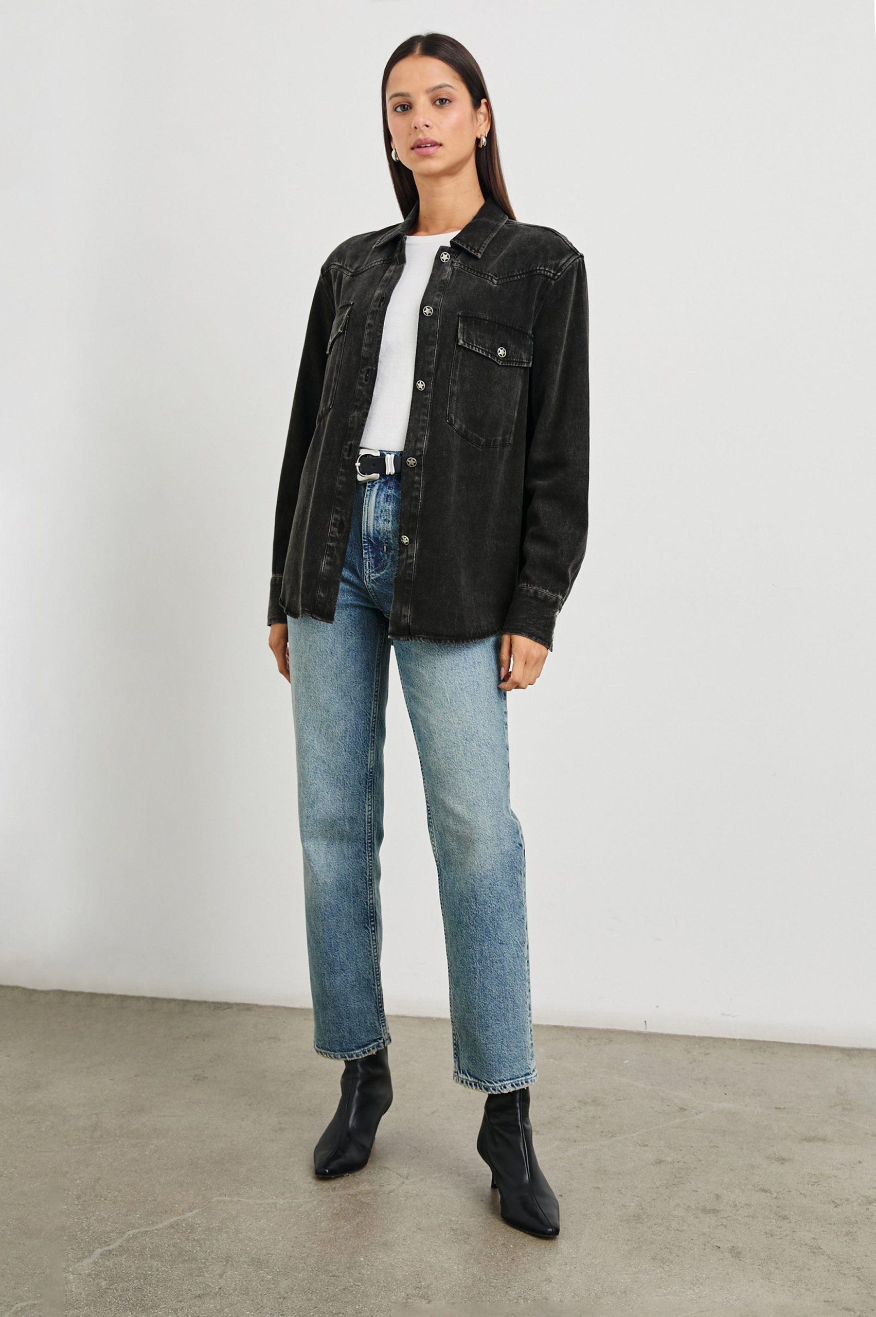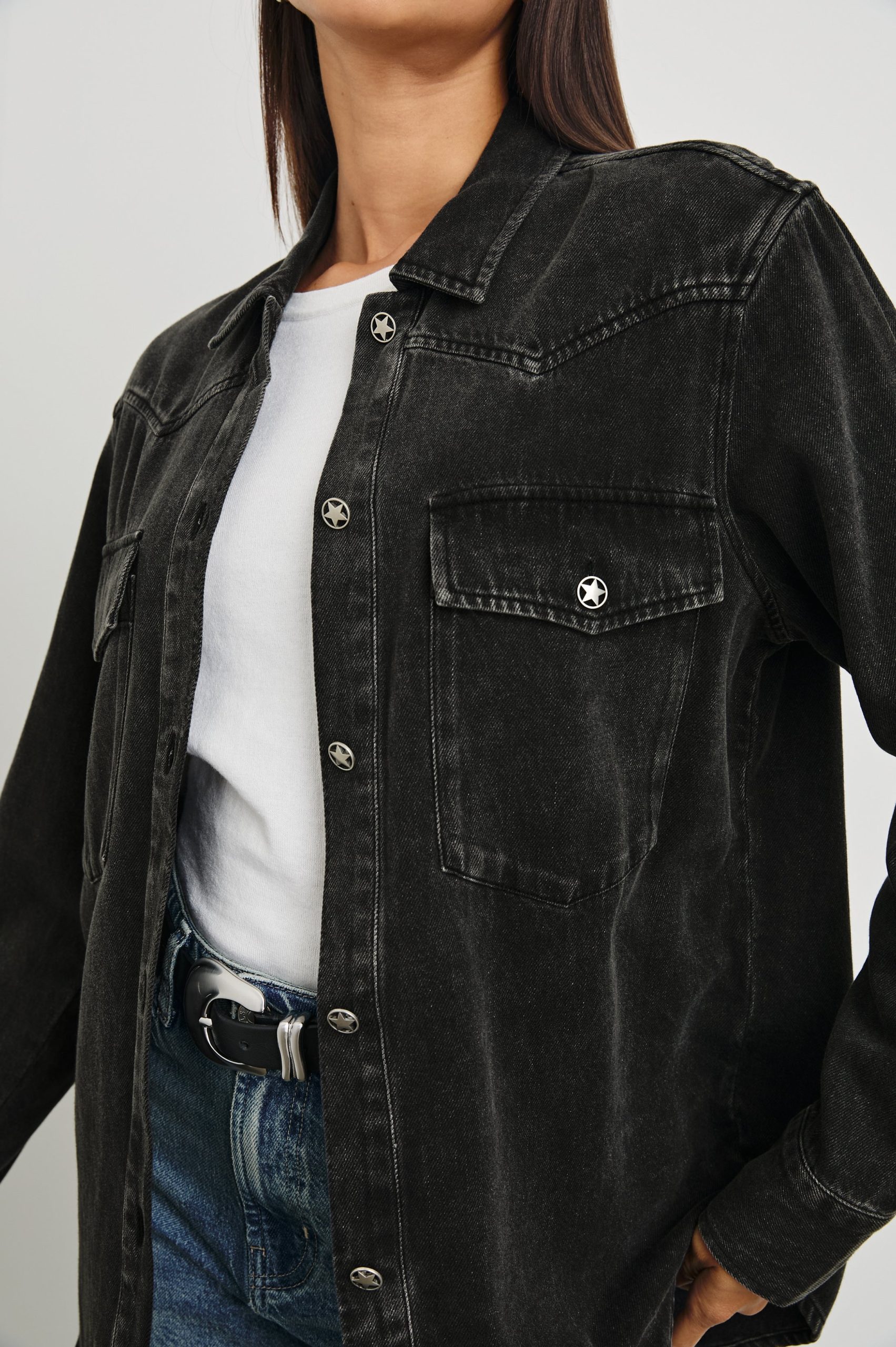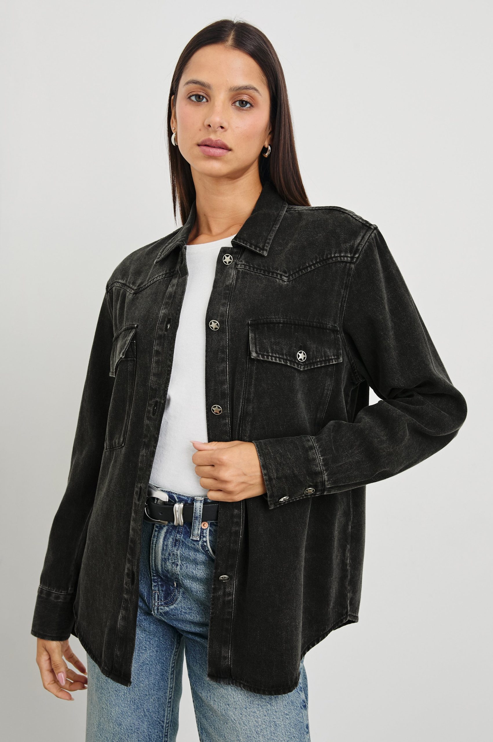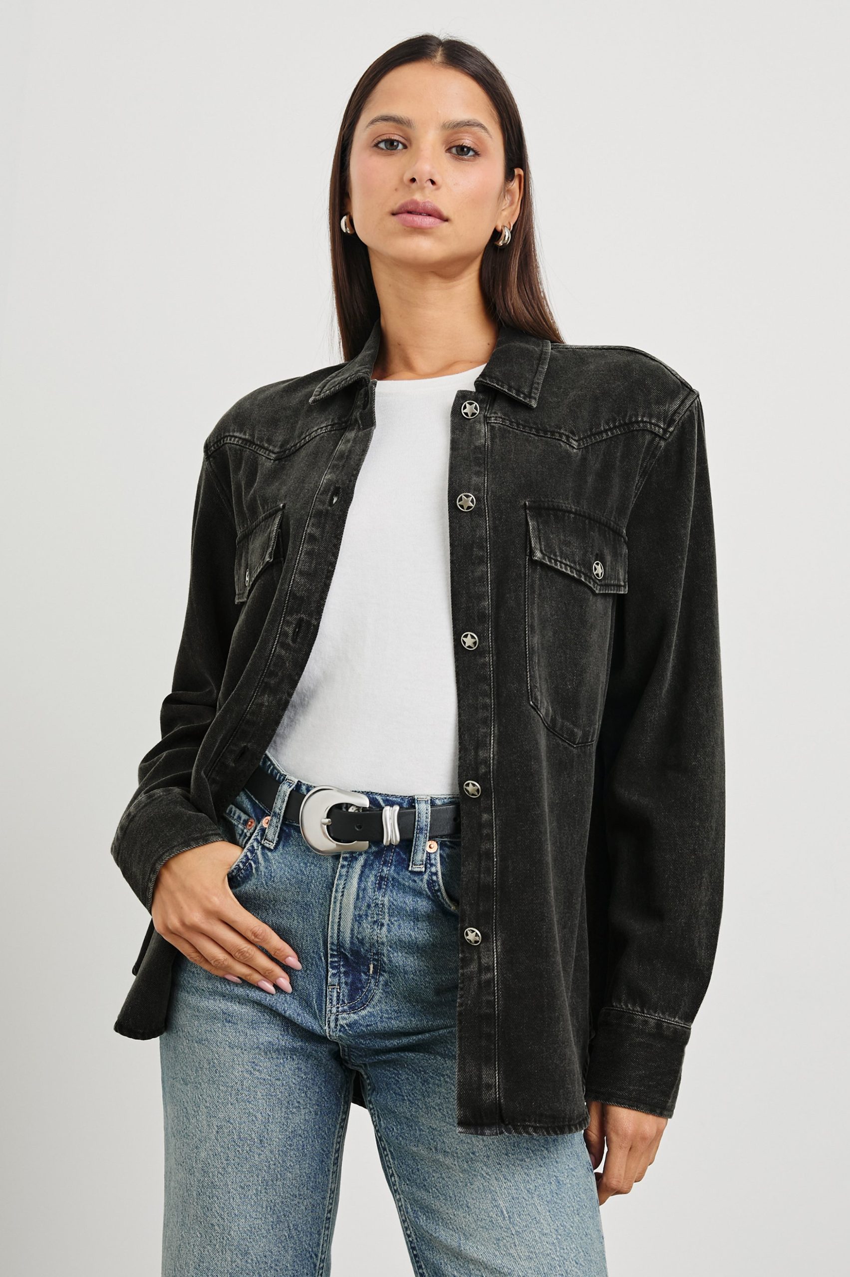 This denim shirt embodies casual sophistication, perfect for both work and weekend outings. Crafted with durable mid-weight denim fabric with snap buttons and patch pockets, the August ensures practicality without compromising style.