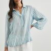 Yarn-dyed in Cambria stripe with a half-henley neckline, the Banks is a luxe linen shirt that goes from swimsuit cover-up to everyday wear.