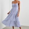 The Blakely Dress is a loose fit midi dress that can be worn for occasions way beyond the beach. Made from environmentally conscious, double-gauze organic cotton, it’s perfect for vacation or everyday, warm-weather wear. Other features on the blue striped dress include minimalist, adjustable straps and an elastic waist for definition.