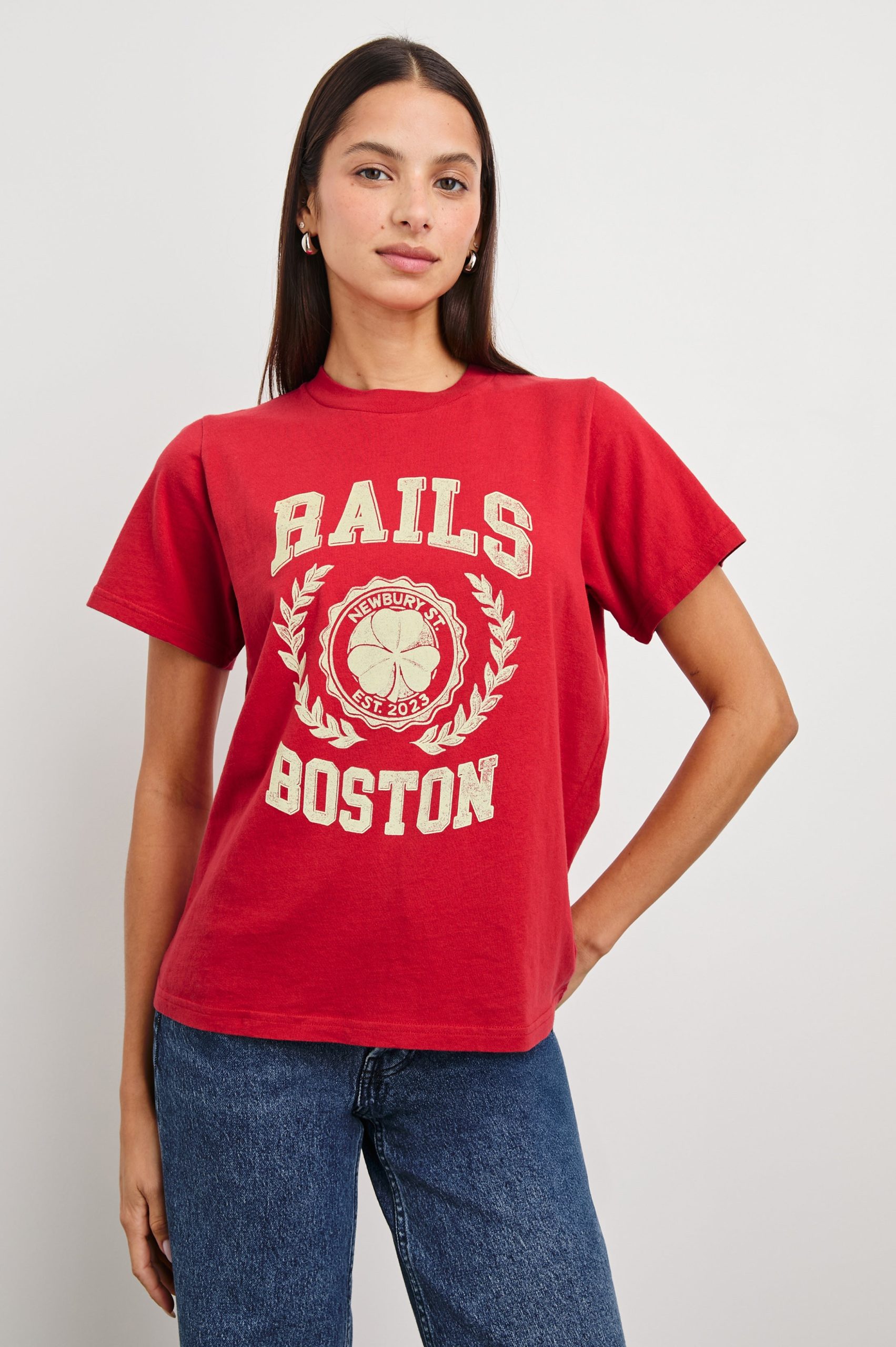 The graphic tee of your dreams. Made from an unbelievably comfortable cotton jersey, this boyfriend-style shirt comes in a red colorway with a Rails Crimson print.