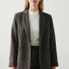 Tailored to perfection, this menswear inspired blazer will take your style to the next level. Made from a wool blend, this double-breasted mixed print blazer jacket features faux horn buttons, notched lapels and functional flap pockets.