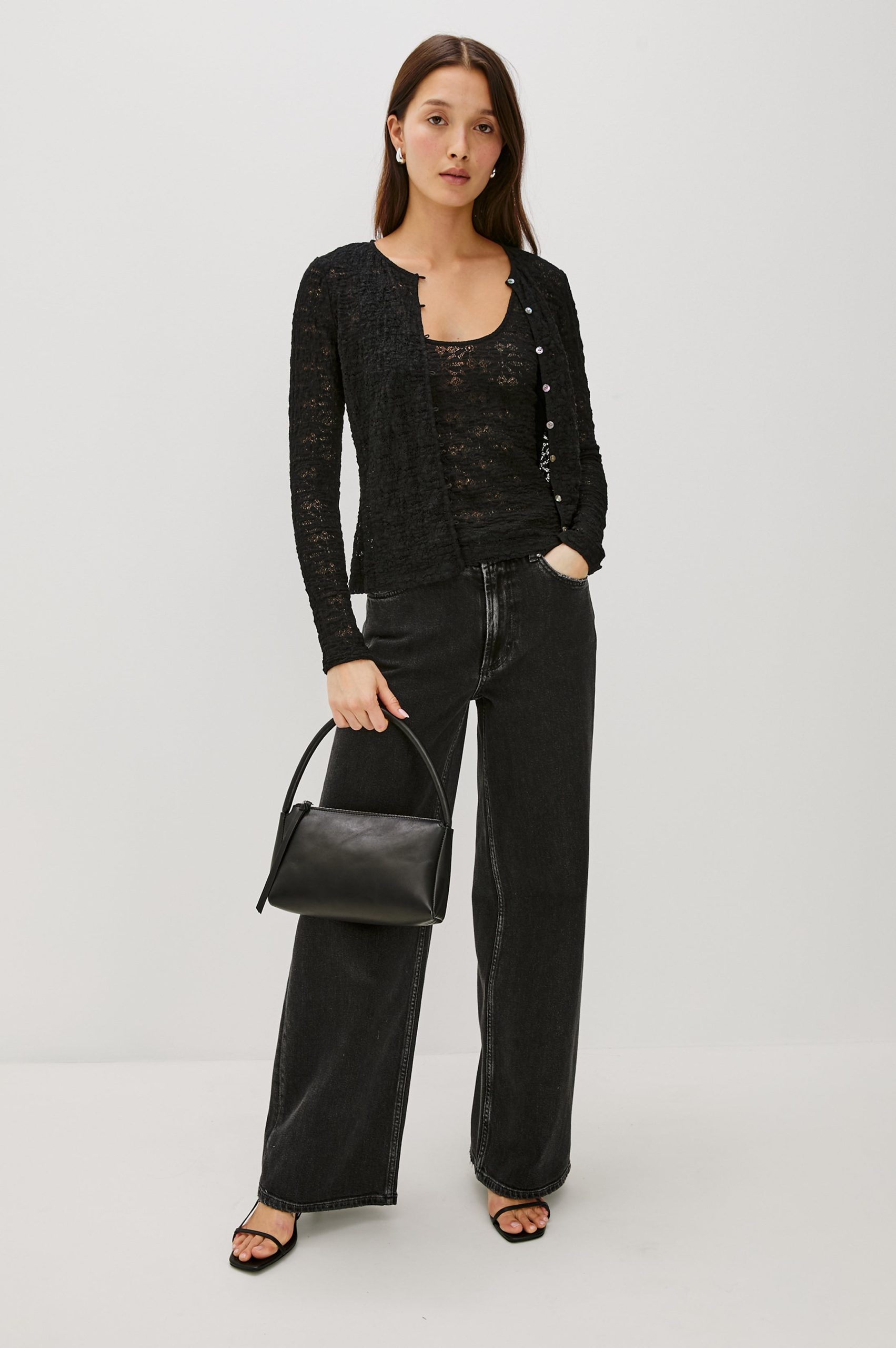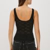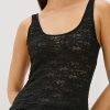 The Donya Top is a classic scoop neck tank in a delicate lace fabrication. It’s sheer, unlined, and ideal for layering.