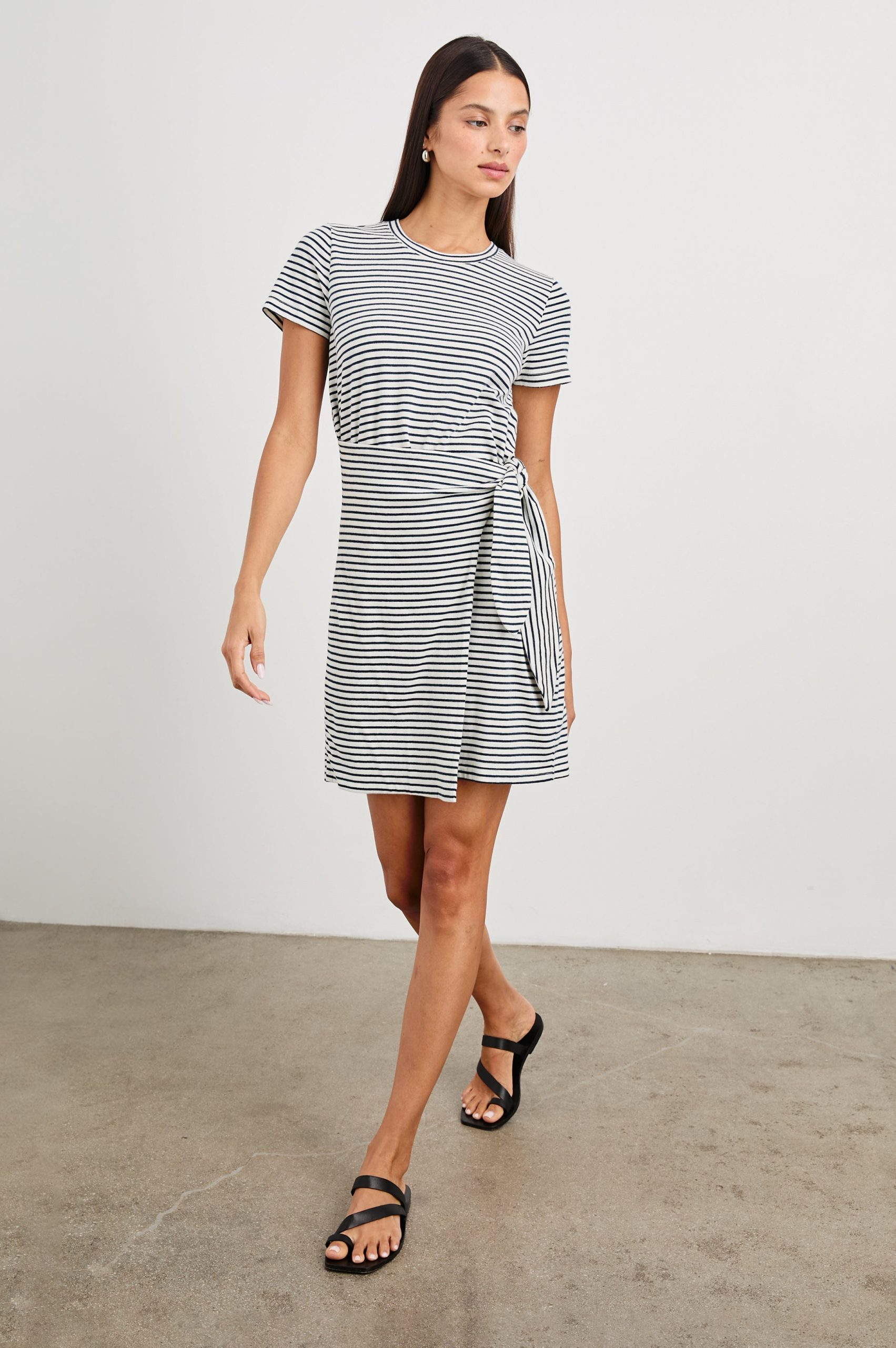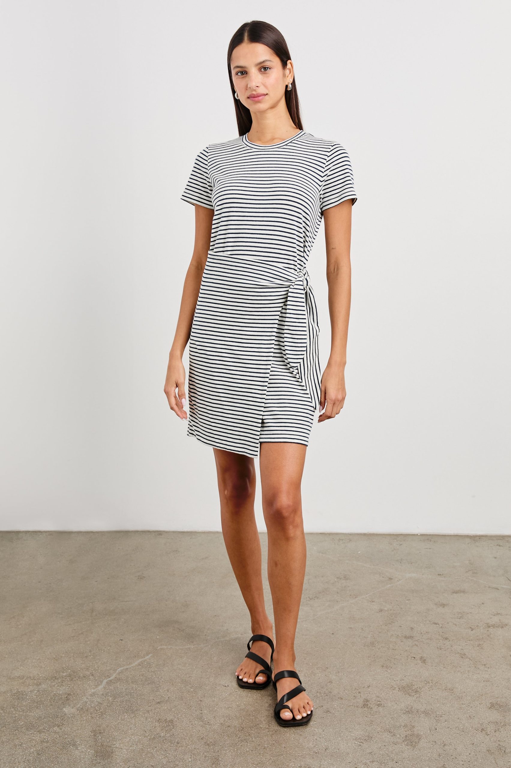 Everyday comfort, elevated. The sueded cotton jersey Edie Dress features short-sleeves and a crew neckline, finished with an adjustable wrap tie at the waist for a customizable fit.
