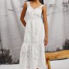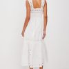 The Fawn is an embroidered midi-length dress with a sweetheart neckline and intricate eyelet details. Crafted from crisp, 100% cotton poplin, it’s complete with a comfortable shirred waist and tank straps — both structured and lightweight.