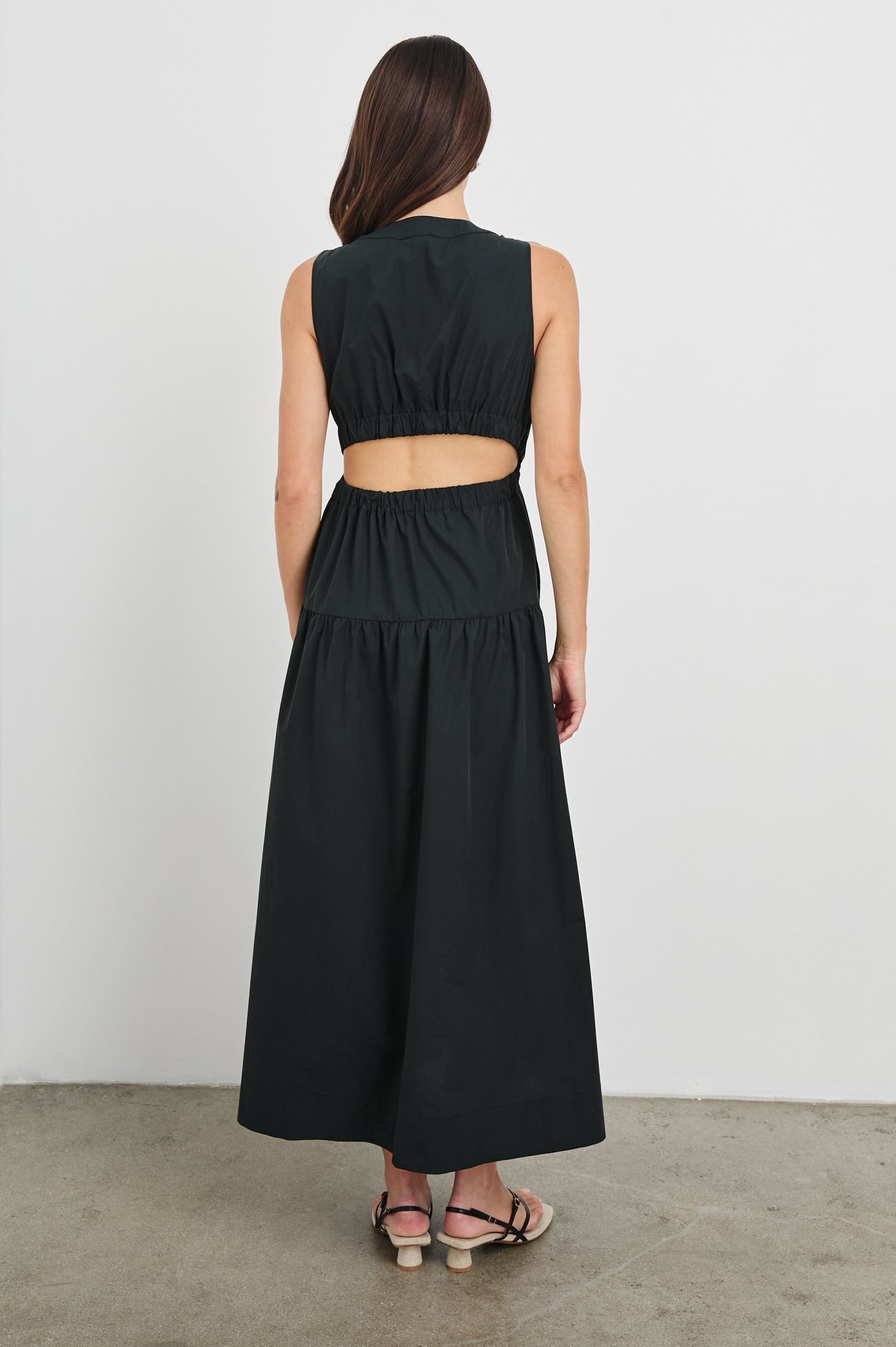 The Genevieve maxi dress is designed for effortless wear, featuring a flattering A-line fit and a cut-out detail at the back.