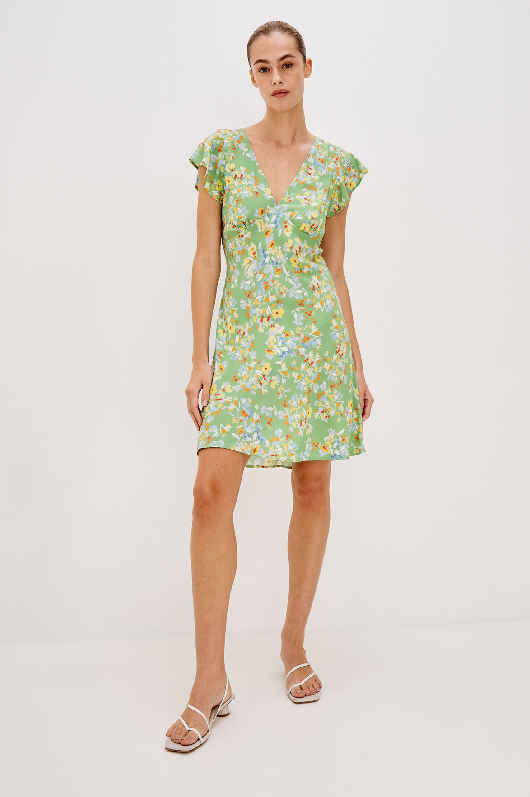Equal parts effortless and flattering, the Gigi mini dress is made from soft rayon crepe fabric and accented with thoughtful details like delicate flutter sleeves, a plunging v-neckline, and flowy skirt.