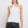 The classic tank — with a twist. The Hira is a cotton blend asymmetric top with a keyhole feature and varying strap width, designed for a body-contouring fit.