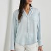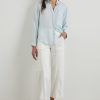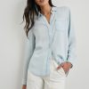 Tencel™ denim, long sleeve, faded light blue button-down shirt featuring vintage wash finish, classic fit, and patch pocket at chest. A super soft and lightweight take on the classic denim shirt.