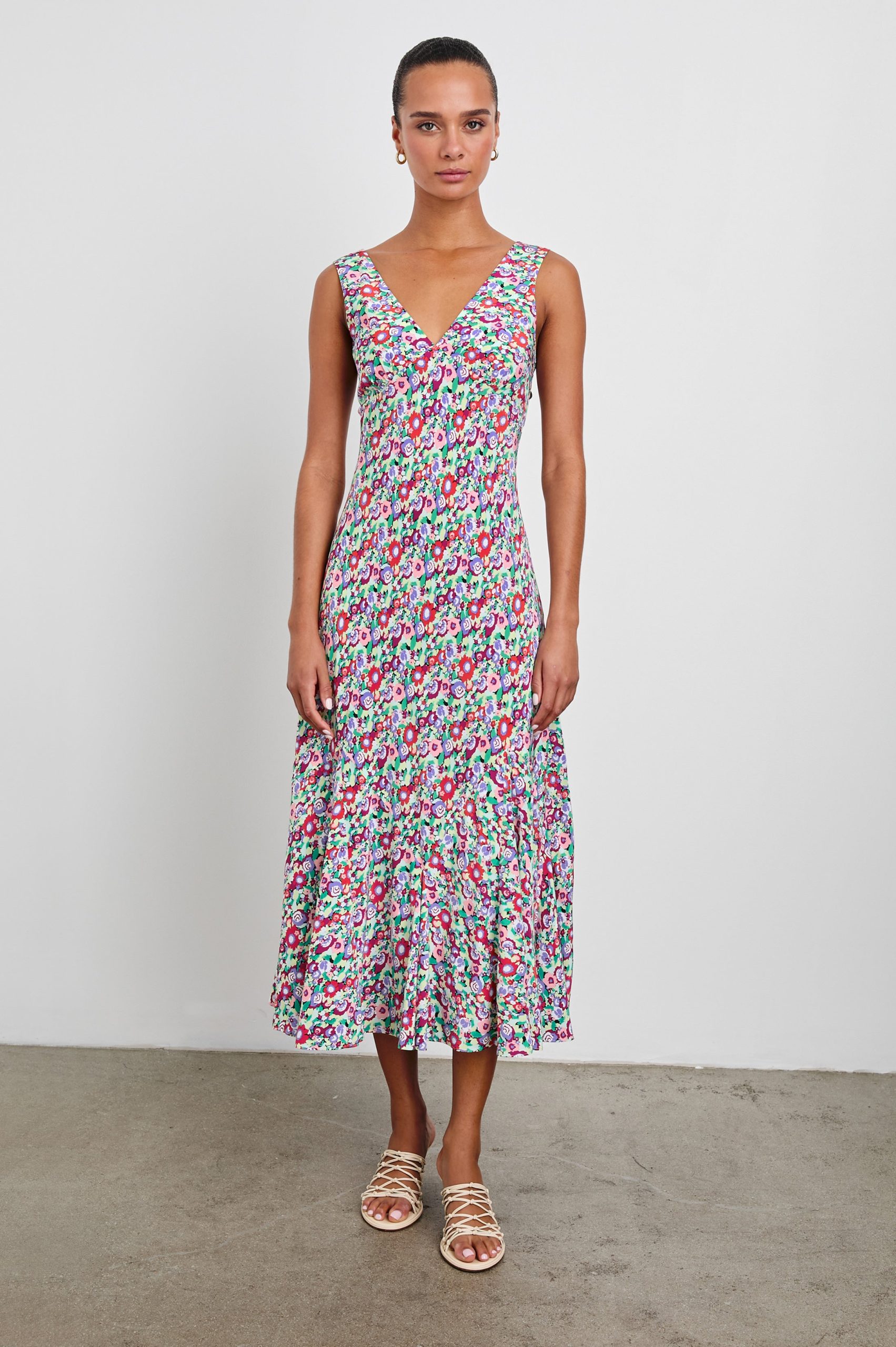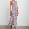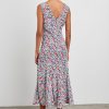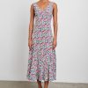 This lightweight rayon crepe dress has a full skirt, deep v-neckline and an empire waist reminiscent of vintage occasionwear. Dress up with boots or down with sandals in this summer floral print.