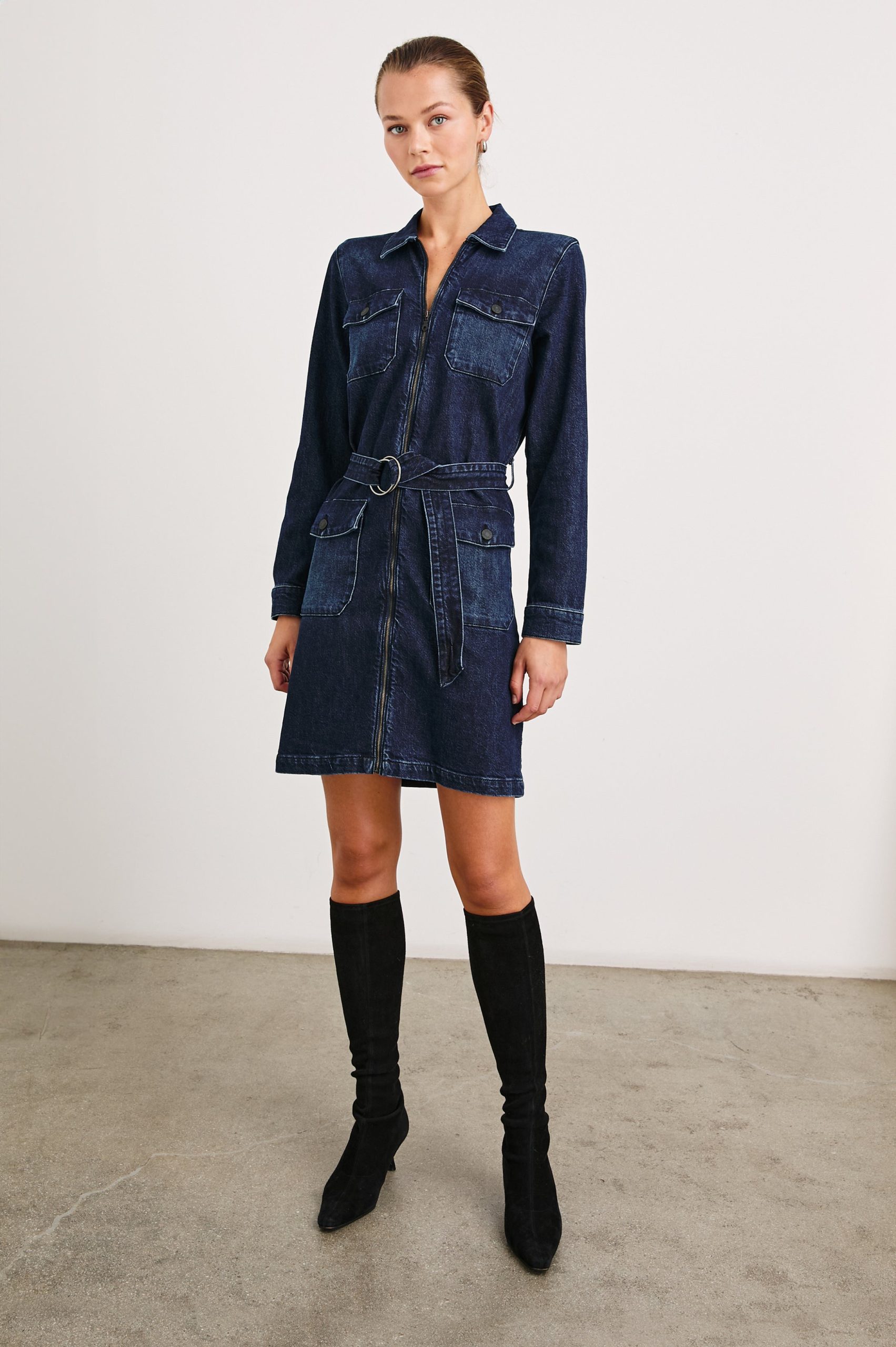 Become the 70s screen siren in the Jefferson. Crafted from drapey 100% cotton, the Jefferson skims your curves for a flattering and ultra-feminine silhouette offset with utility-inspired details. Complete with an o-ring adjustable waist belt for a personalized fit, the Jefferson is a mini dress designed to make a statement.