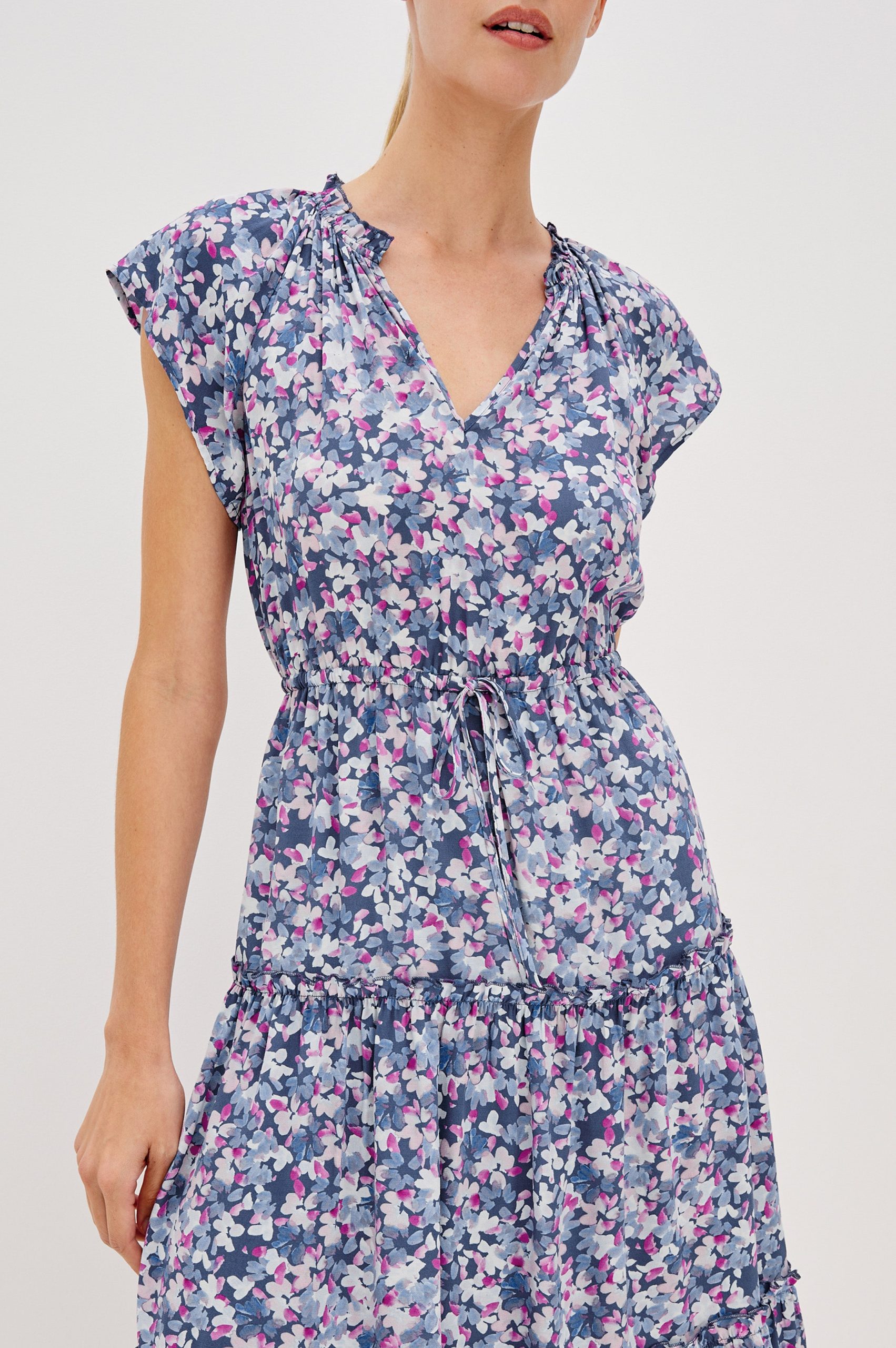Crafted from lightweight crepe for ultimate wearability, the Juni features delicate ruffles and flutter sleeves to keep all eyes on you. Customize your fit with a tie-shirred waist, then float through the season with a fully-lined tiered skirt.