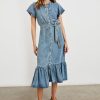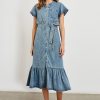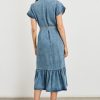 An ultra-femme interpretation of the denim dress, the Kahlo is t-shirt, meets pinafore, meets classic midi. Crafted from the softest Tencel denim with a peplum frill, snap buttons and an adjustable waist tie, it makes a subtle statement in any setting.