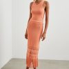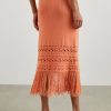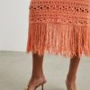 We're feeling fringe this season and have a feeling you will be too. This skirt is made from soft novelty fabric with intricate crochet and knotted fringe detailing at the bottom. Kaja pairs well with a simple top or the matching Ally top.