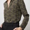A classic button down with a unique animal print, the luxurious Kate is a long sleeve silk top with a single front pocket.