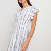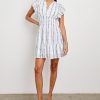 An essential sundress crafted from lightweight beach cotton. The Kimora has a classic hourglass silhouette with a ruched waist, customizable back-tie and flutter sleeves.