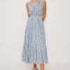 The Lou Lou is a luxe linen-blend dress with waist-cinching smocking. This maxi has a v-neckline and fully-lined skirt with ruffle detail at each tier.