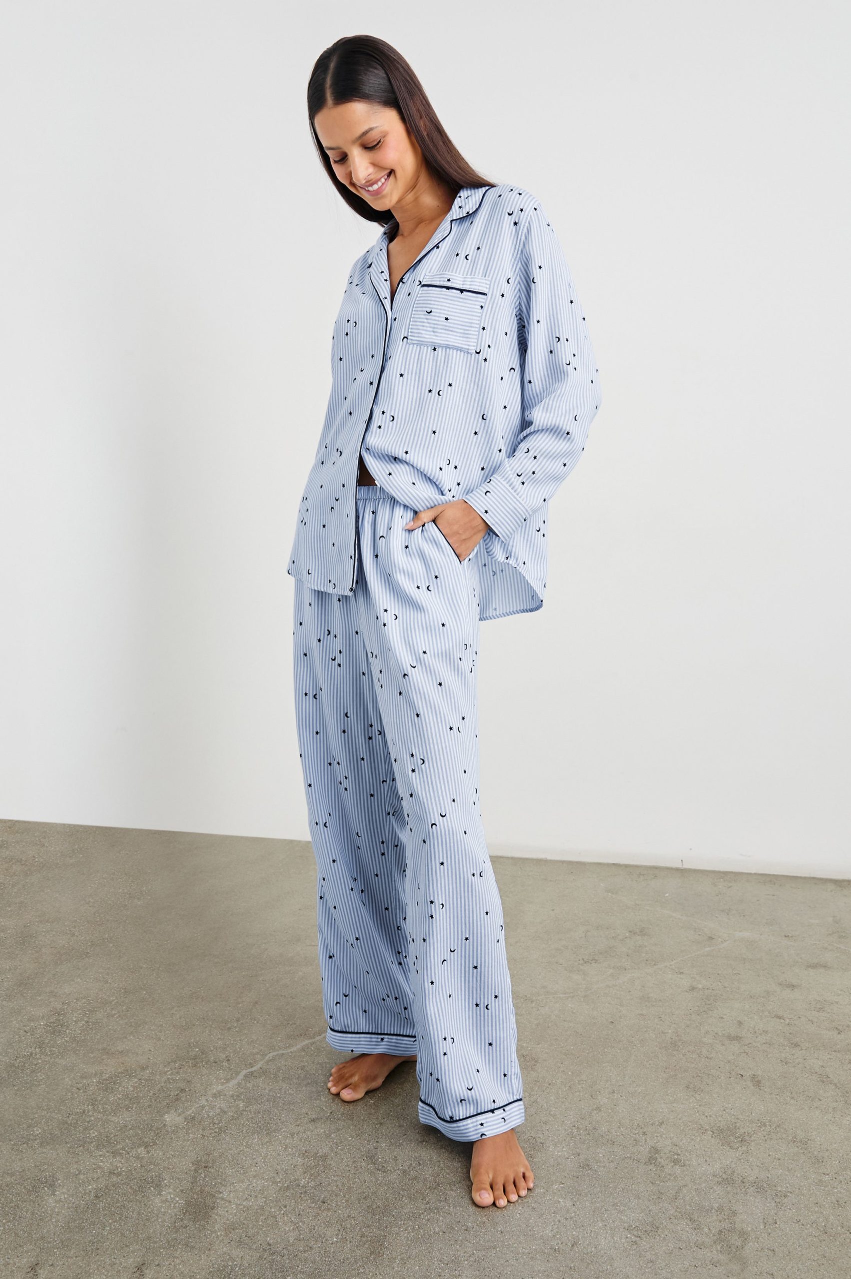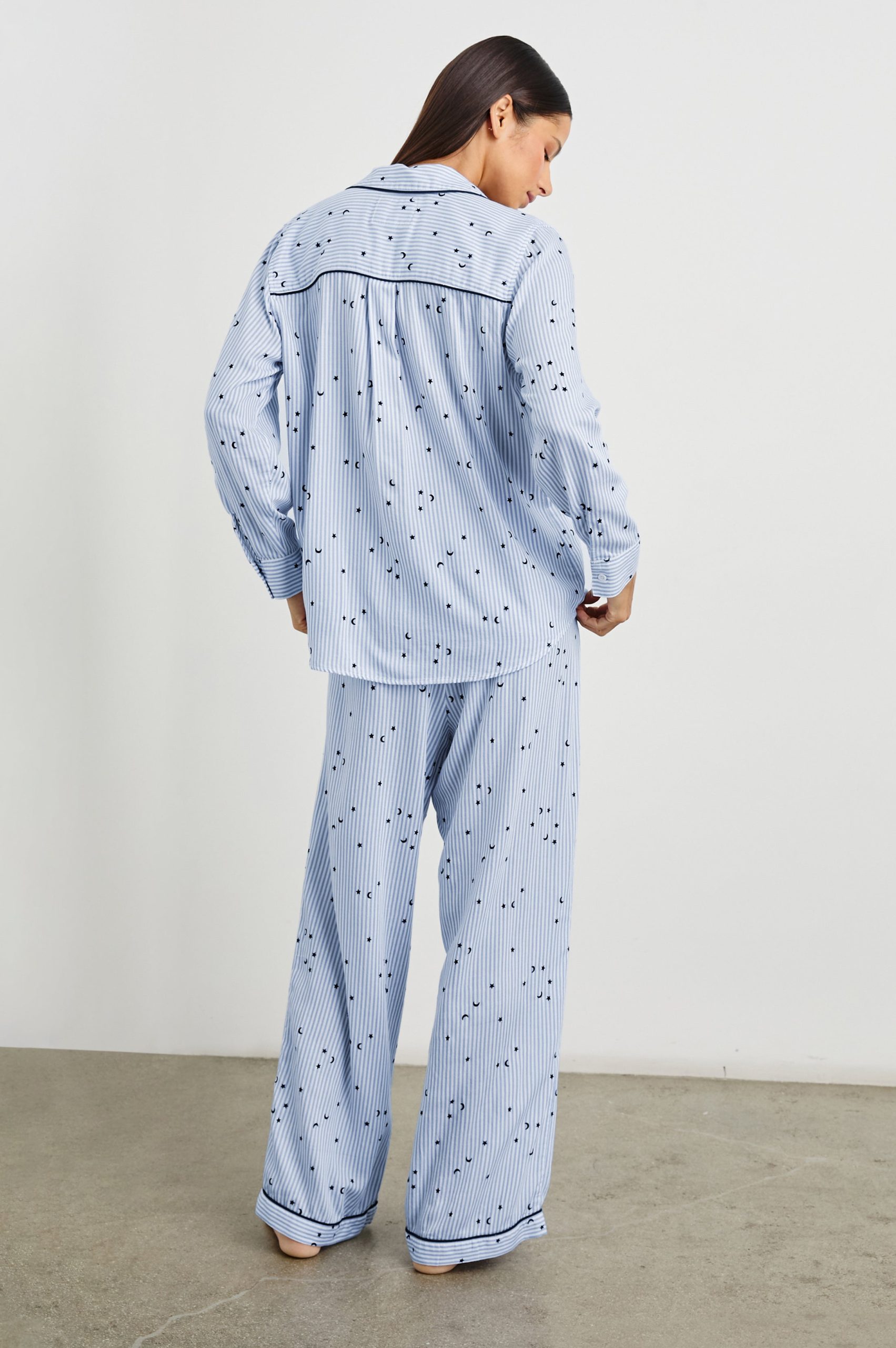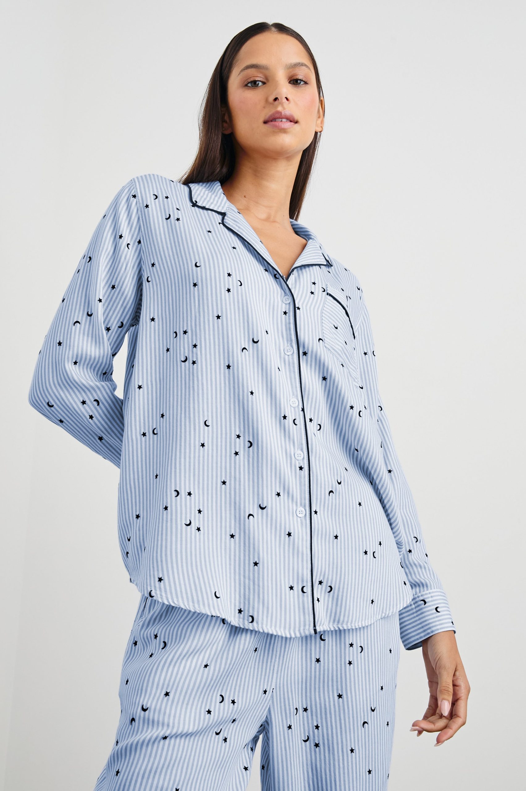 It’s nothing but sweet dreams in the Luna Pajama Set. Crafted from ultra-luxe brushed cotton, the Luna boasts a uniquely soft hand-feel for superior comfort. Finished with pockets and adorned with tiny velveteen-reminiscent applique stars and moons, you may never want to take these PJs off.