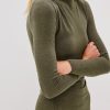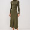 The Margaret Dress offers refined comfort with a ultra-soft brushed tissue jersey fabrication, with a mock neck and diagonal shirring for a sophisticated silhouette.
