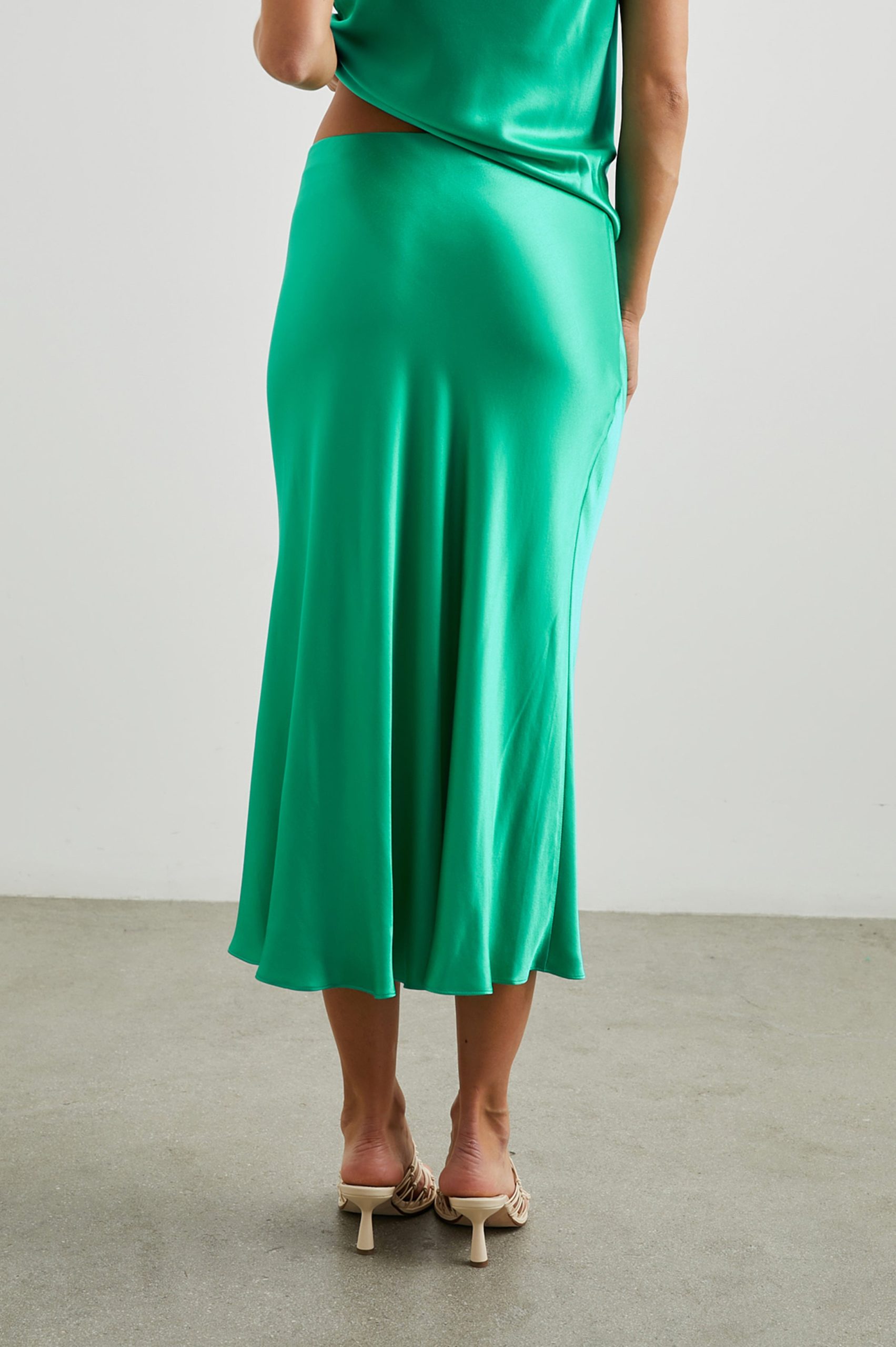 The Maya Skirt is perfectly proportioned with a slip silhouette and midi length that feels both comfortable and chic. Taking a minimalist approach, the front-facing side slit and jade color both make a subtle statement. Best of all, it’s done in a smooth, satin back crepe that looks as luxe as it feels.