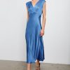 The Odella is a mid-length, event-ready dress crafted from a luxe satin crepe. It features a bias-cut skirt and double-front crossover bodice, while a back tie keeps it secure.