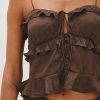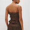 Crafted from silky crinkle satin, the Ortona Top has tiered ruffles and dainty tie closures. A side zipper and adjustable straps ensure the perfect fit.