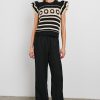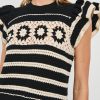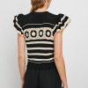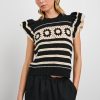 The Penelope is a cotton-blend crochet style with a fitted silhouette. With crewneck features and flutter sleeves, this top is an ultra-feminine fusion of sweater and tank top.