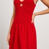 Cut from stretchy ribbed knit material with a curve-hugging form fit, this dress is ideal for date nights and semi-formal events. Featuring intricate details including a keyhole cutout at the chest and an a -line skirt.