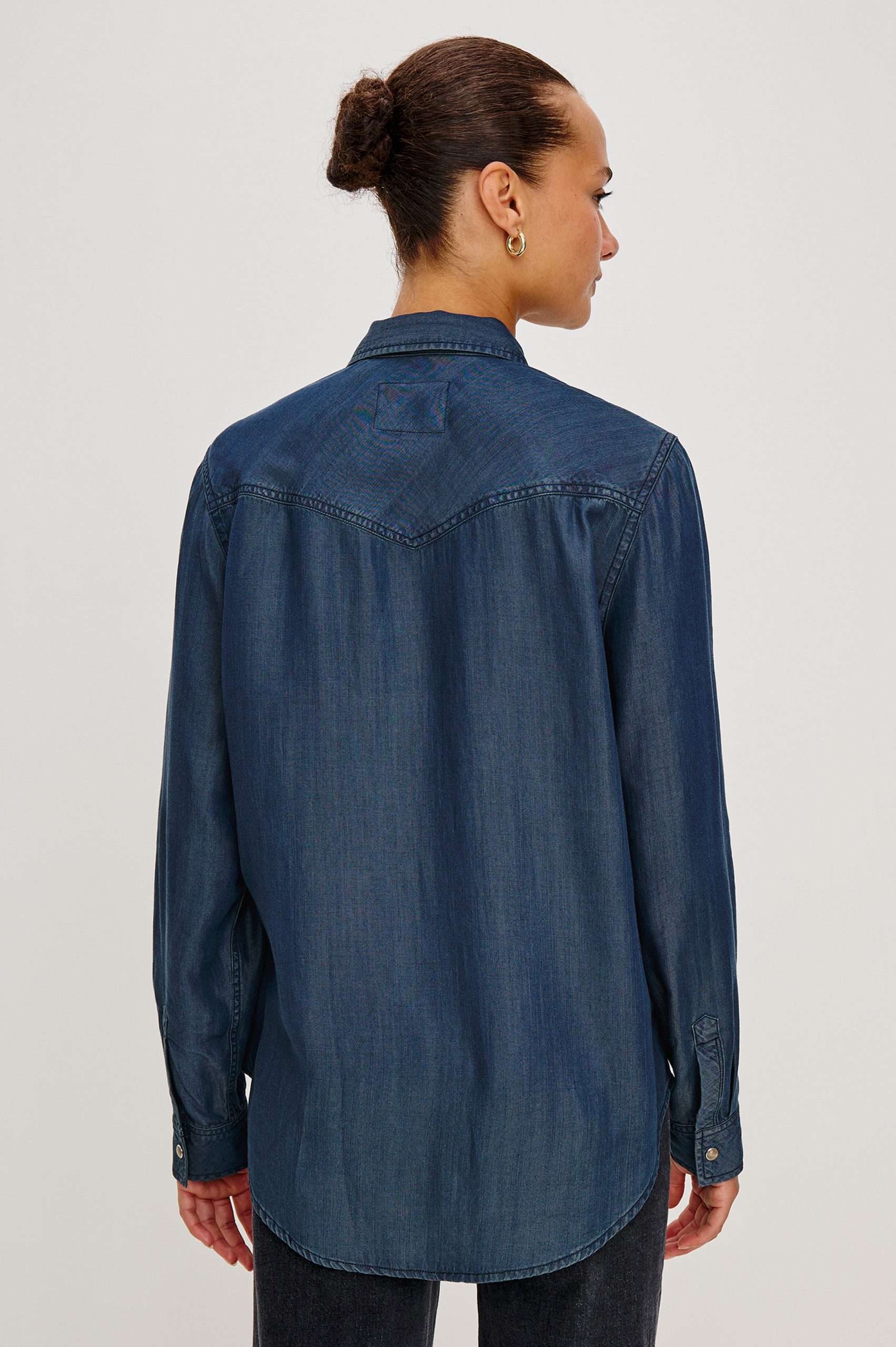 Combining style and comfort, the Remi is a utility-inspired shirt and your new trans-seasonal essential. It’s Tencel denim and detailed with a notched collar, functional pockets, and etched logo faux horn buttons.