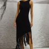 This asymmetrical fringe dress is just as fun to wear as it looks. Made from high-quality crochet knit, Rylee can be dressed up or down for any outing this season.