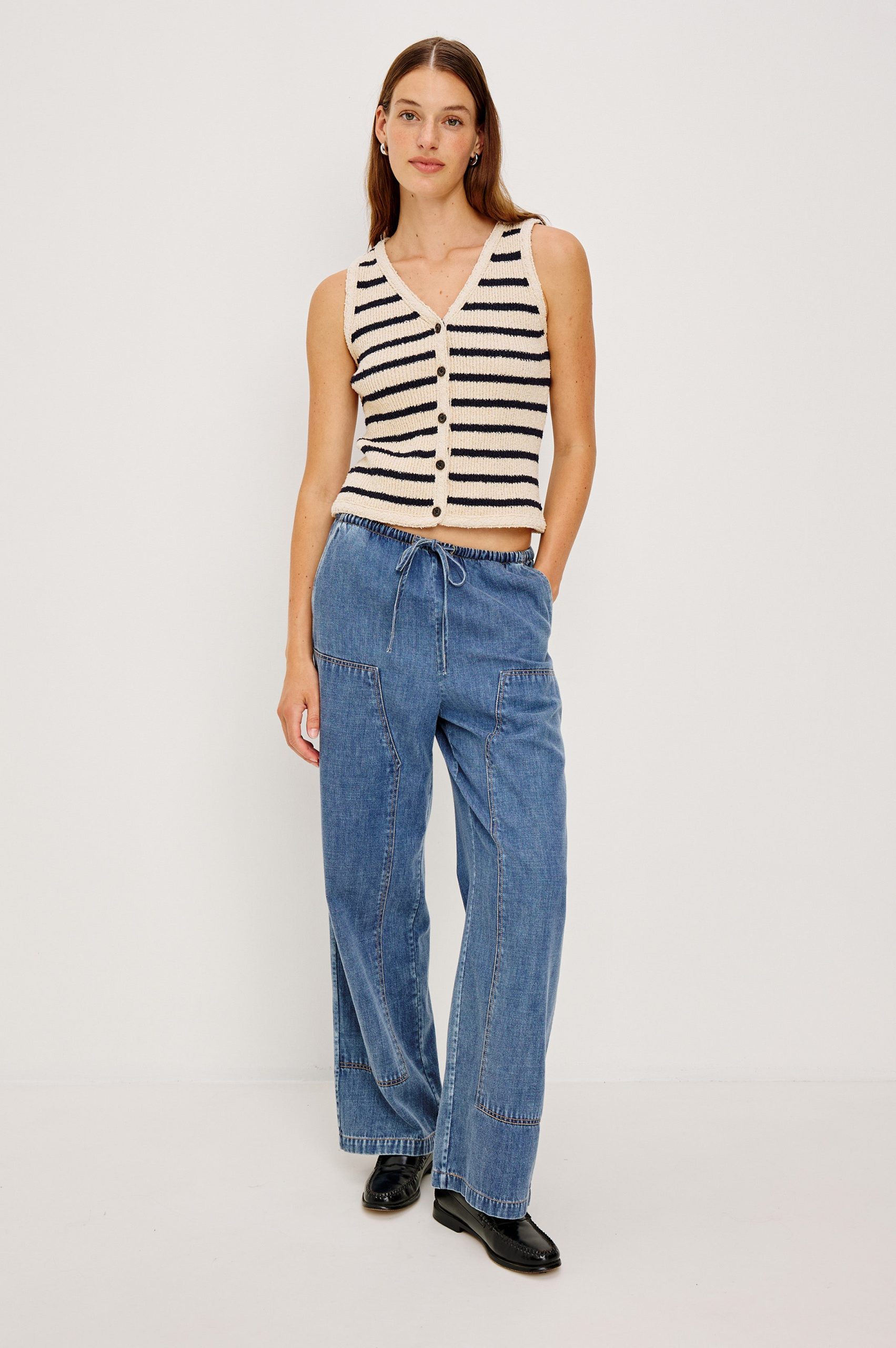 Made from super-soft cotton, the Sade Vest is easy to wear layered or alone. Subtle ribbing adds textural interest, and a full-button front offers versatile styling options.