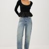 The barrel jean you’ve been waiting for, the Samo features a low-slung fit in light-stretch denim. Thoughtful darting details and a subtle curved seam elevate the look.