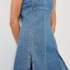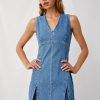 The Serra is a fitted, denim mini dress crafted from recycled cotton with an empire waist and deep v-neckline. Finished with box pleats for a fit-and-flare shape, this dress is a flattering staple.