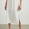 The skirt of the season, the Sol is a cotton poplin midi with a lightly gathered waist that cinches and drops at the hips. It’s finished with delicate embroidered eyelets at the hem.