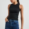 This flattering pullover tank top is the perfect elevated take on comfortable, effortless dressing. Made from super soft, ribbed knit jersey, this black crewneck racer back tank top features a slim fit.