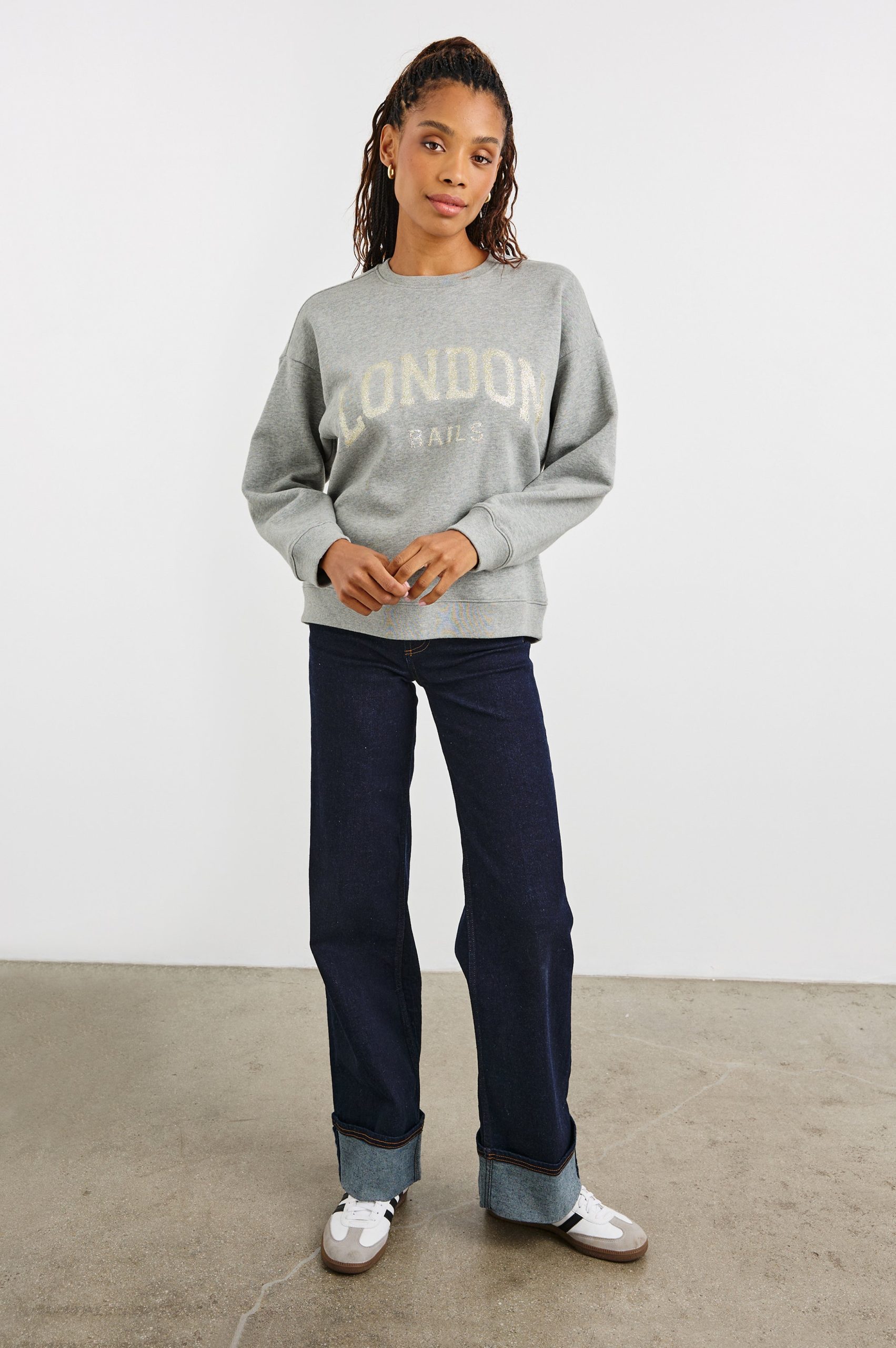 Shine bright in the perfect throw-on-and-go sweater dedicated to the big smoke. With an ultra-soft interior and sparkly finish, this athletic crewneck is the elevated take on loungewear.