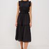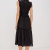 The Vivier is a maxi dress in crinkled cotton poplin with a smocked, fitted bodice and waistband that give way to a relaxed skirt with ruffled tiering.