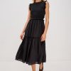 The Vivier is a maxi dress in crinkled cotton poplin with a smocked, fitted bodice and waistband that give way to a relaxed skirt with ruffled tiering.